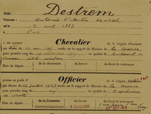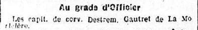 l'Armée navale en novembre 1915 : "S'est distingué à plusieurs