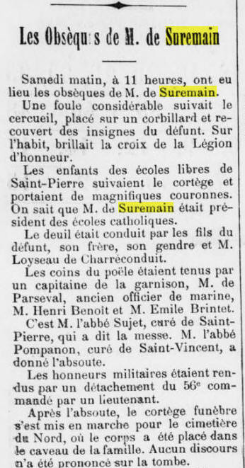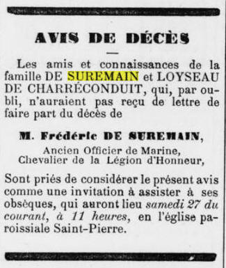 Alexandre de Suremain et de Adèle DE ROSILY MEROS, son épouse