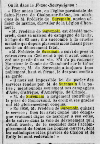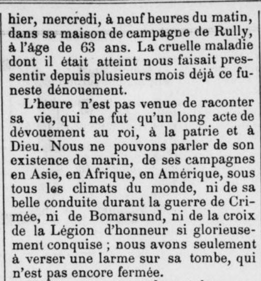 PARIS (Seine) - Décédé le 24 octobre 1883 à RULLY (Saône et Loire)
