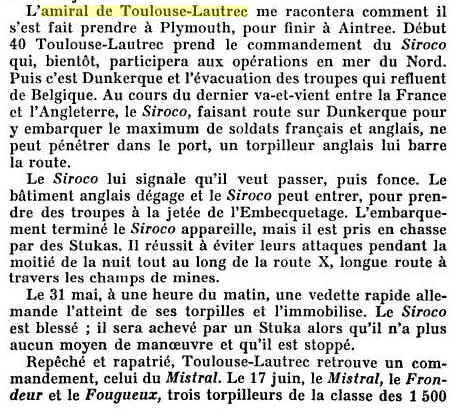Siroco et Mistral (1940), son rôle comme chef de la section de