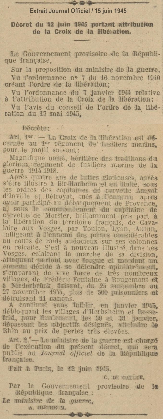 Extrait Journal Officiel du 15 juin 1945 le mentionnant