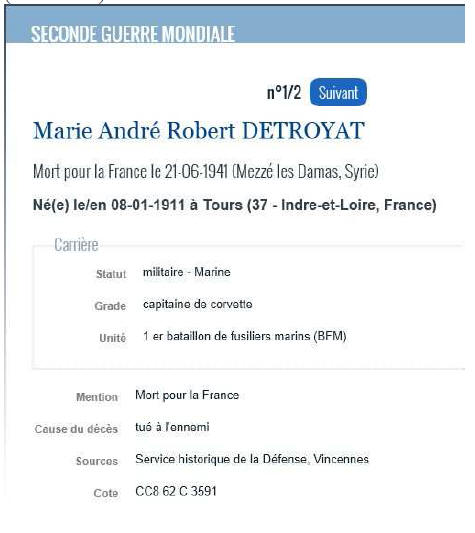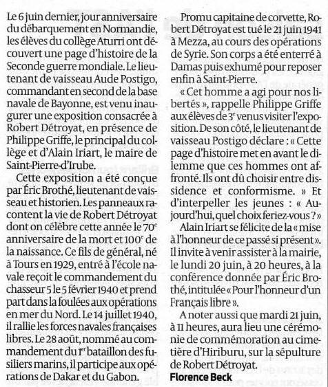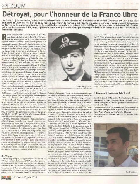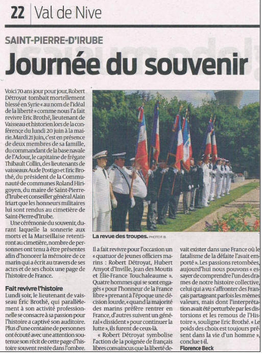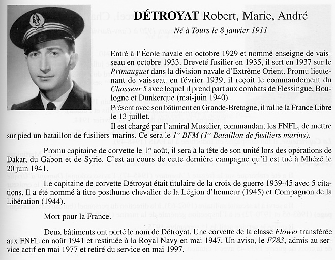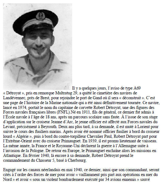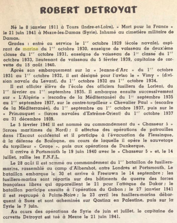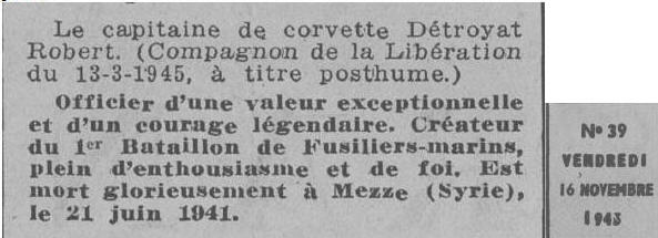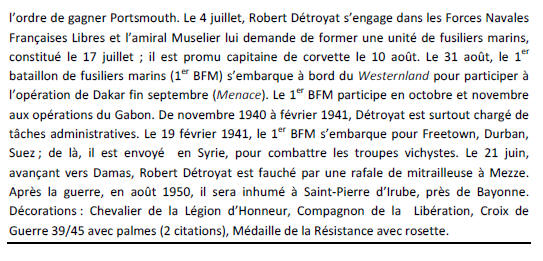 torpilleur en feu. A la même date, Robert Détroyat est l'objet d'une