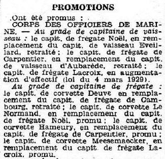 1931 : commandant en second du croiseur Colbert. Officier de la
