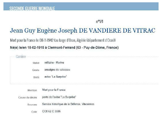 27 novembre 1942, l'enseigne de vaisseau de Vandière de Vitrac a