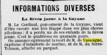 le 9 janvier 1886, en mission à CAYENNE (Guyane)