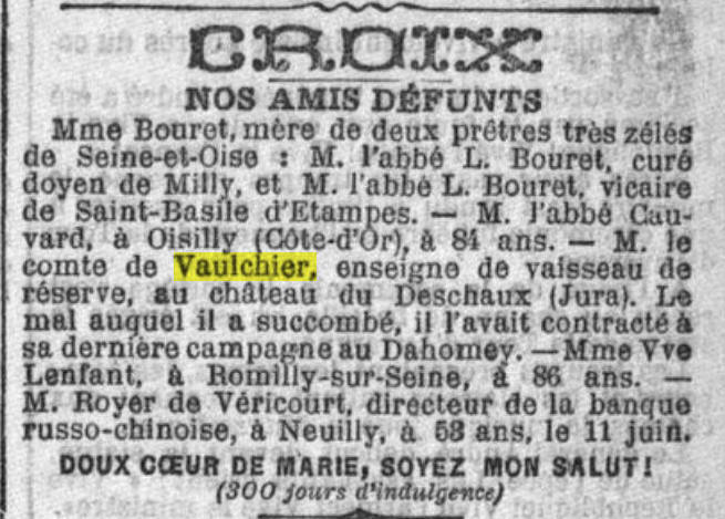 BESANCON (Doubs) - Décédé le 20 juin 1900 à Le DESCHAUX (Jura).