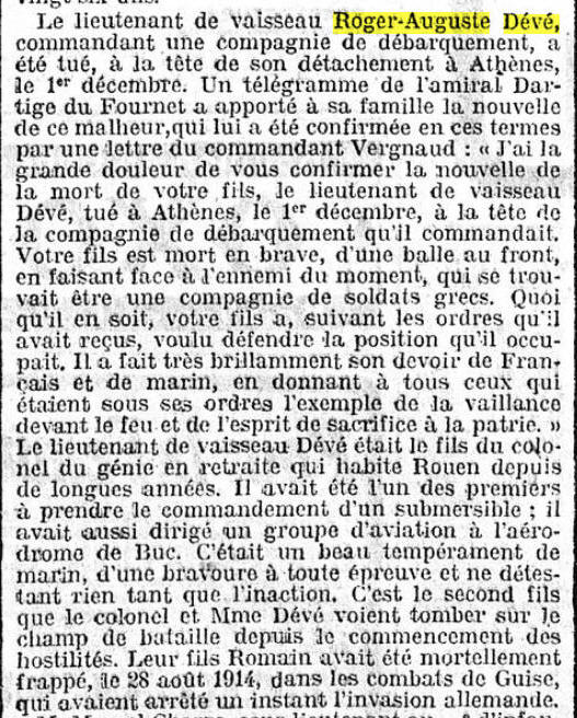 de vaisseau Dévé fut tué d'une balle à la tempe. En dehors de lui,