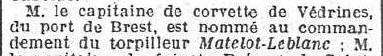 1914, Second sur le torpilleur "FOURCHE"1ère Escadrille, 1ère Armée