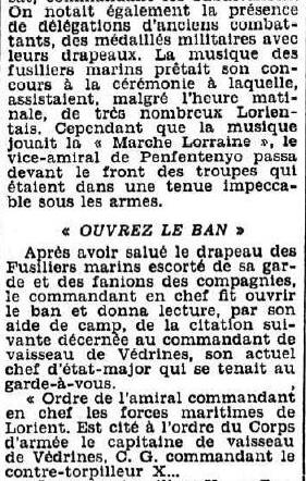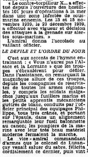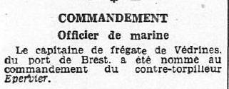 2 décembre 1939, Commandant le contre-torpilleur "TIGRE".