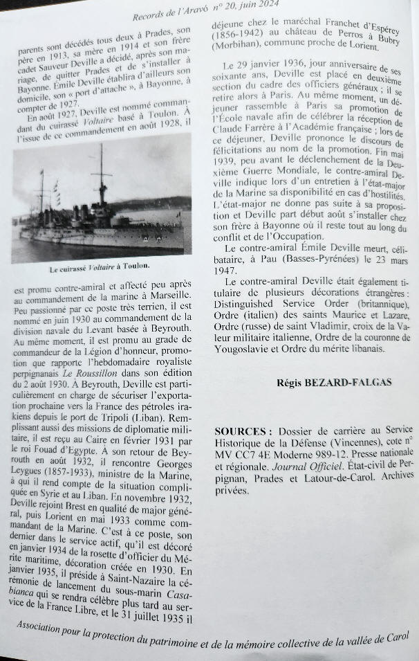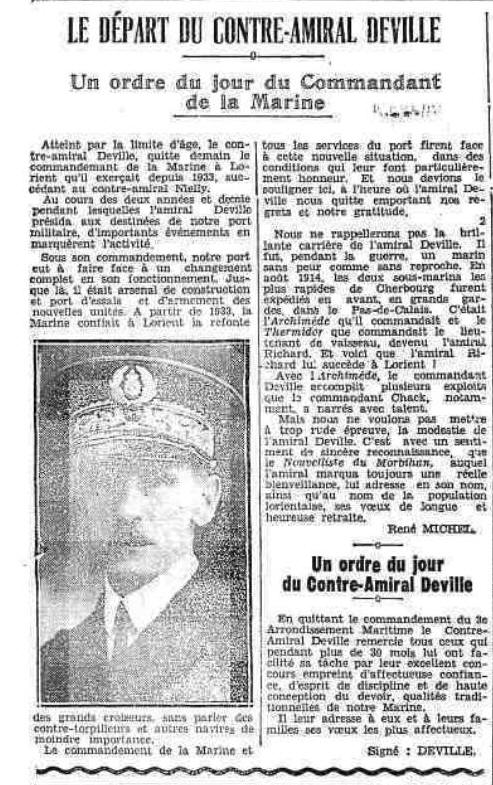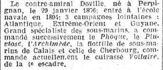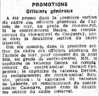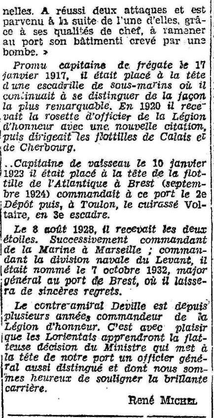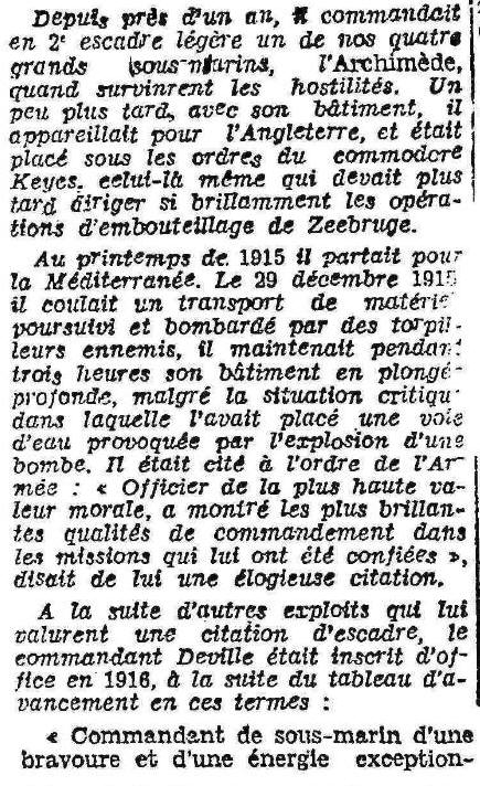 Il est cité à l'ordre de l'Armée navale. "Officier de la plus