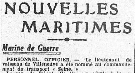 Villeneuve, Le transport " Seine "se rend à Wilhelshaven pour
