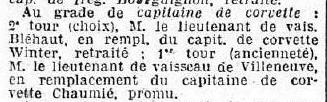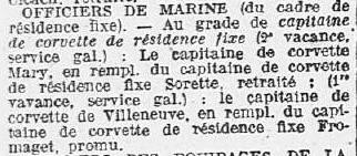 Capitaine de corvette en résidence fixe le 5 juillet 1928.