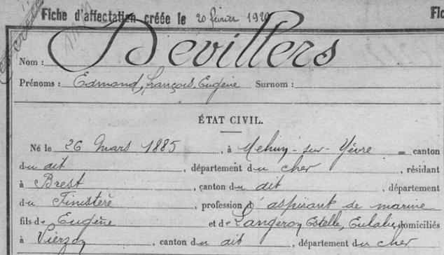 l'Armée Navale en janvier 1915 : "1er porte drapeau de la Marine. A