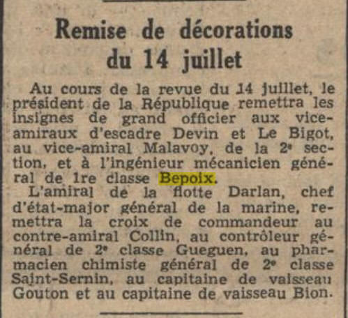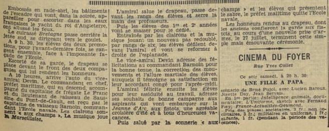 Extrait La Dépêche de Brest - 16 juillet 1938 /