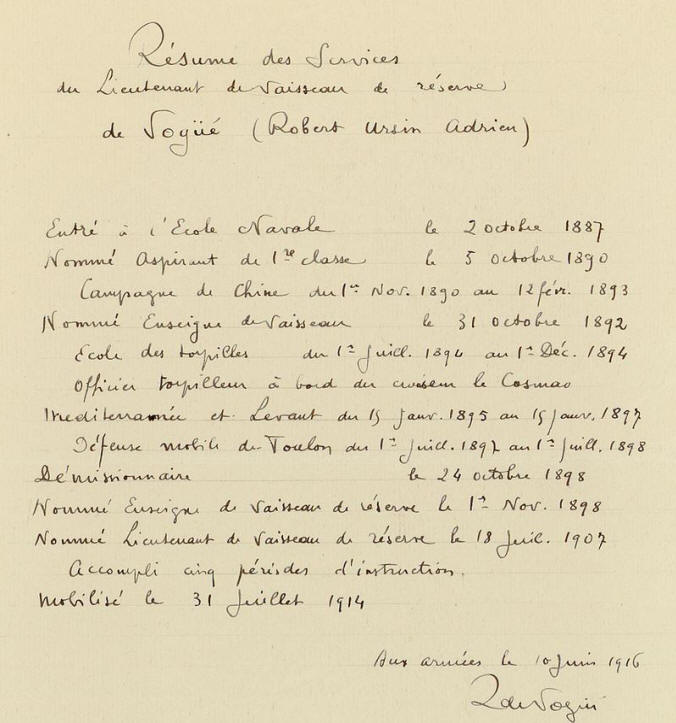 Lieutenant de vaisseau Adrien de Voguë, 59, quai d’Orsay,