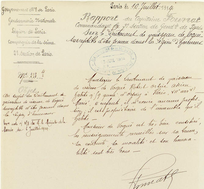 officier extrait du dossier Légion d'honneur, daté du 10 juillet