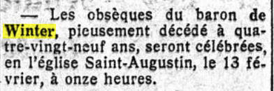 (Saône et Loire) - Décédé le 9 février 1939 à PARIS VIIIe (Seine)