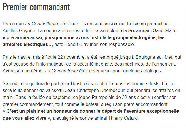 1er commandant du patrouilleur