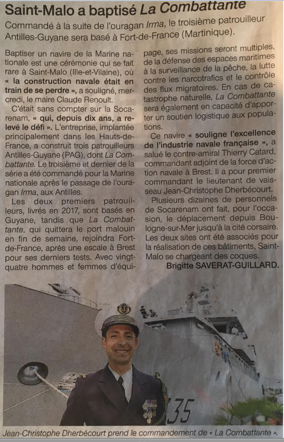 Extrait Ouest-France 15 juin 2019 / Remerciements Thierry Le Breton
