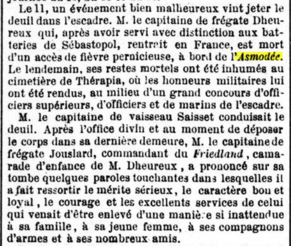sur l' "ASMODEE", pendant la guerre de CRIMEE, des suites