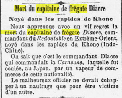En 1886 Diacre est affecté à la division navale de l’Océan