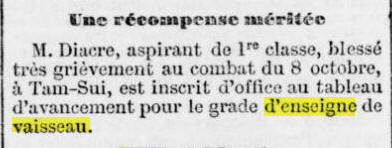 sa sortie de l’école d’application en 1883, l’aspirant Diacre