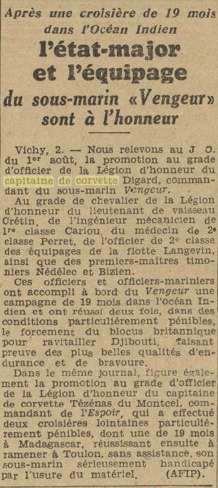 sous-marins Nymphe (1936) et Vengeur (1938-1942)