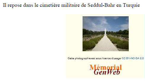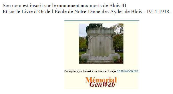 BLOIS (Loir-et-Cher) - Tué le 27 mai 1915 à BODRUM, TURQUIE.