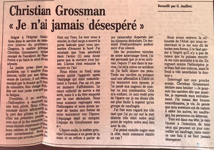 qui se trouvaient à bord, un seul, le PM fusilier commando Grossman