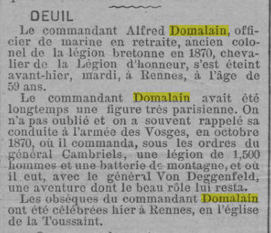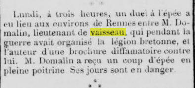 juin 1871, Commandant les Francs Tireurs Bretons.