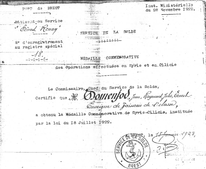 sur le croiseur cuirassé "ERNEST-RENAN", 1ère Division légère,
