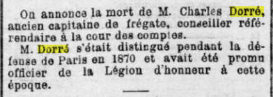 Officier de la Légion d'Honneur le 7 février 1871, étant Capitaine