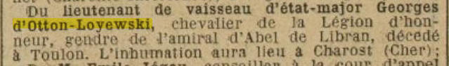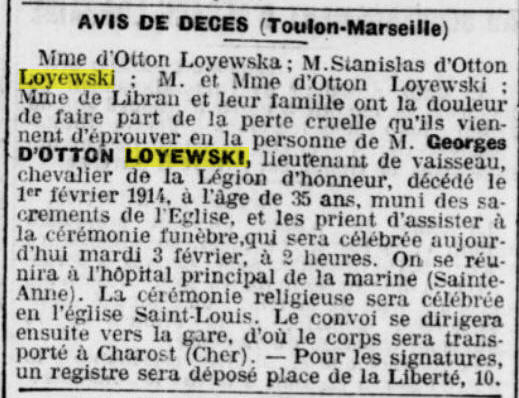 (Seine) - Décédé le 1er février 1914 à TOULON (Var) Inhumé à CHAROST (Cher) Entre dans la Marine en 1895
