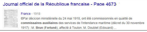 Commissaire auxiliaire des services de l’intendance maritime en 1916