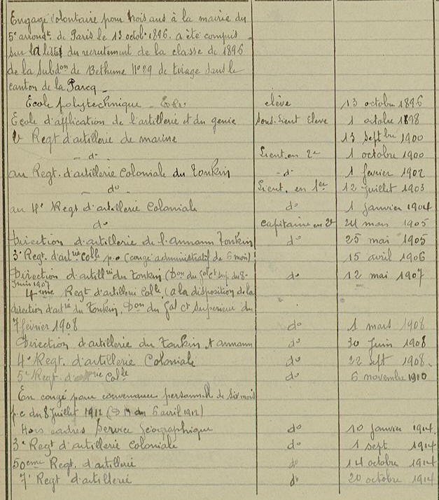 promotion 1896, opte pour l'Artillerie de Marine.