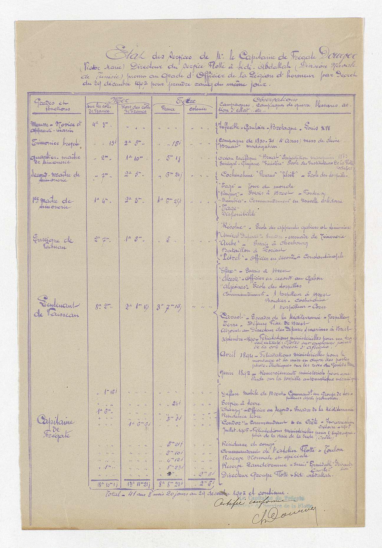 Au 1er janvier 1908, Directeur du Service de la Flotte en TUNISIE.
