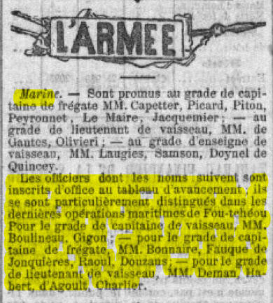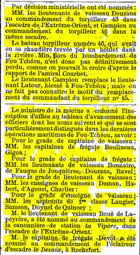 (nomination du 21 juillet 1883), commandant le torpilleur N°45,