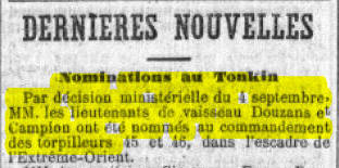 matin, le Lieutenant de vaisseau DOUZANS commandait le torpilleur