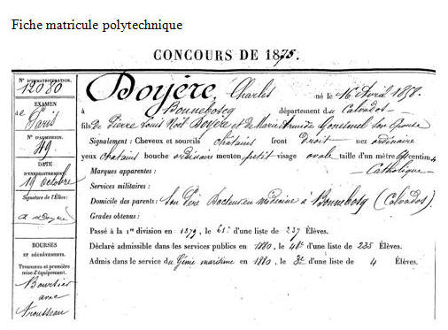 1er octobre 1880 : a choisi l’Ecole d’application du Génie Maritime.