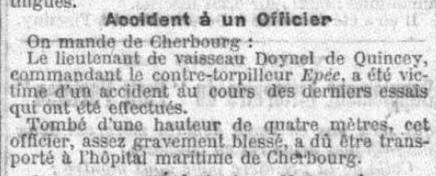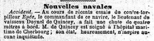 Commandant le contre-torpilleur "ÉPÉE", en essais à CHERBOURG, puis