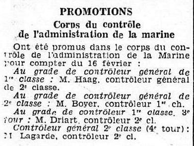 l'Intendance maritime) de la 2ème Région maritime à BREST.