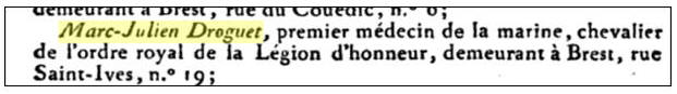 Septembre 1818- 18I9 : il est premier chirurgien en chef à Brest.