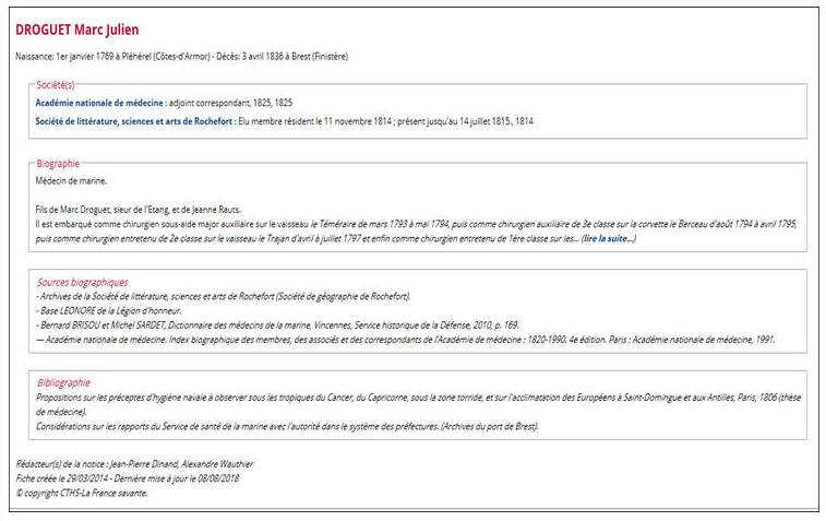 21 février 1794 : il est nommé chirurgien auxiliaire de troisième