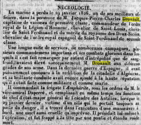 1826, suite à un accident de manœuvre