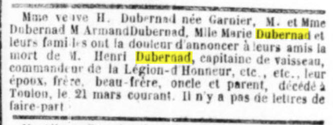 Dubernad, négociant et de Marie Pauline BEHIC, son épouse