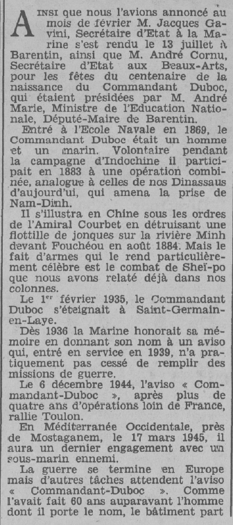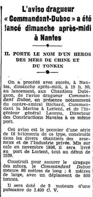 affecté à la Défense mobile du 5ème arrondissement maritime. (Marie
