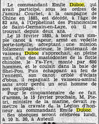 de l'amiral Courbet avec la citation suivante :15 ans de service