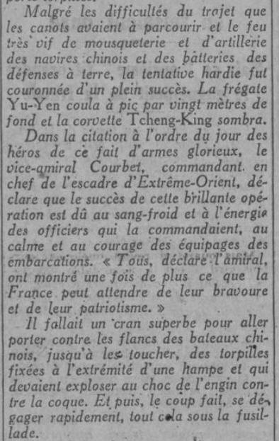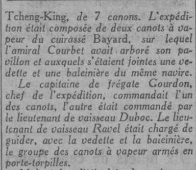 conduite en rade de Shei Pou où, sous un feu d'artillerie de de
