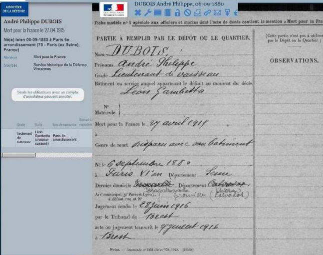 (Seine) - Décédé le 27 avril 1915, en mer au large de SAINTE-MARIE