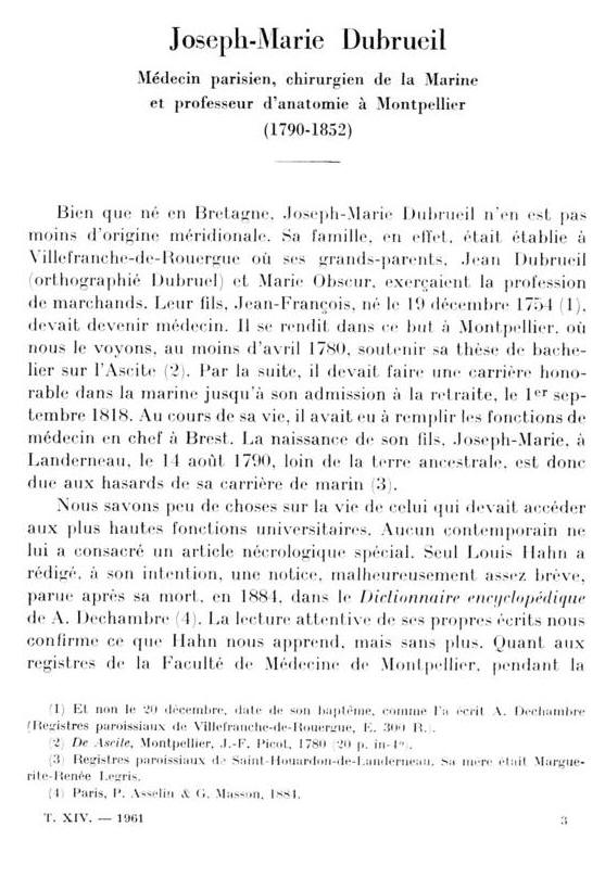 Dubrueil. Premier médecin de la Marine Royale à Brest. Né le 19